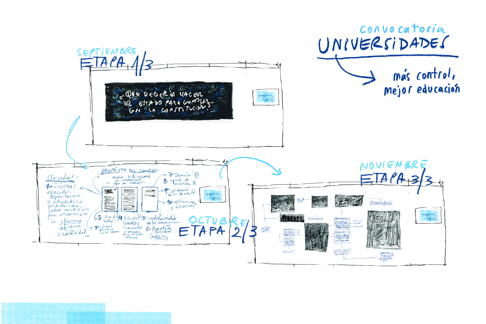 Estas intervenciones comunicacionales se desarrollan en tres etapas a lo largo de la segunda parte del año donde cada una de ellas presenta una propuesta participativa con las personas que visitan nuestro edificio:
